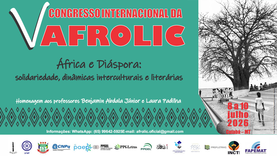 PREZADO(A)(S) MEMBROS(A)(S) DA ASSOCIAÇÃO INTERNACIONAL DE ESTUDOS LITERÁRIOS E CULTURAIS AFRICANOS (AFROLIC) E DEMAIS PESQUISADORES(AS) DAS LITERATURAS AFRICANAS DE LÍNGUA PORTUGUESA, é com grande prazer que os/as convidamos para o V CONGRESSO INTERNACIONAL DA AFROLIC, que acontecerá na cidade de Cuiabá – Mato Grosso, Brasil, sediado nas dependências da Universidade Federal de Mato Grosso - UFMT nos dias 08 a 10 de julho de 2026.